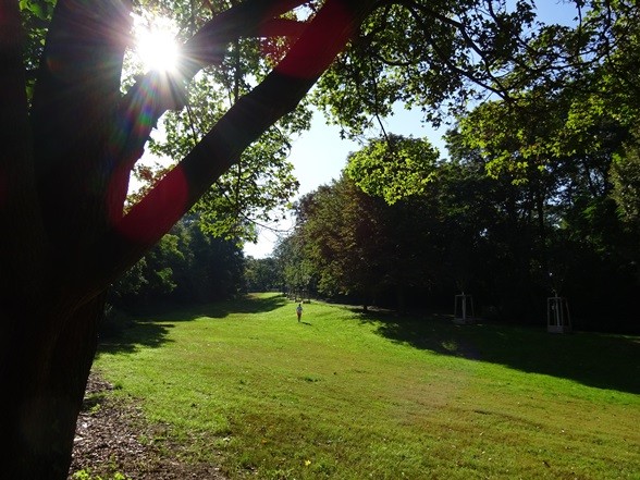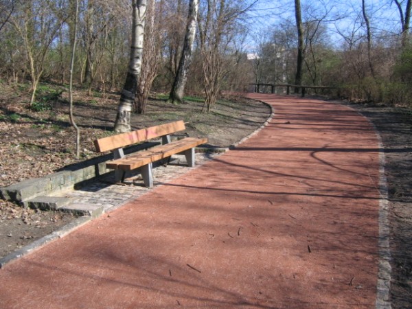 Eine 1,1 Kilometer lange Rundlaufstrecke durch den Fritz-Schloß-Park, zum Joggen oder Walken. Entlang der durch roten Bodenbelag markierten Strecke befinden sich zudem Fitnessgeräte.