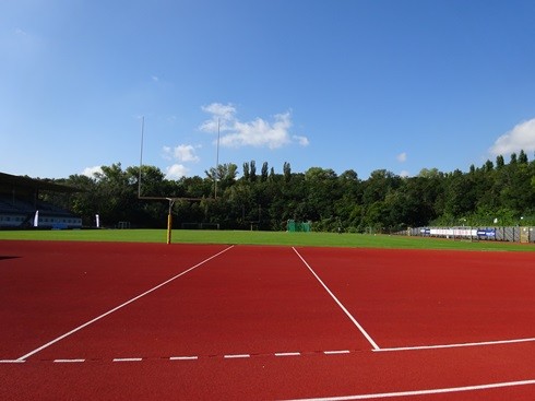 Das Stadion fasst mit der überdachten Zuschauertribüne und Sitzgelegenheiten auf der Gegengerade bis zu 10.000 Menschen. Fußballplatz und Kunststoff-Laufbahn können mit Flutlicht beleuchtet werden.