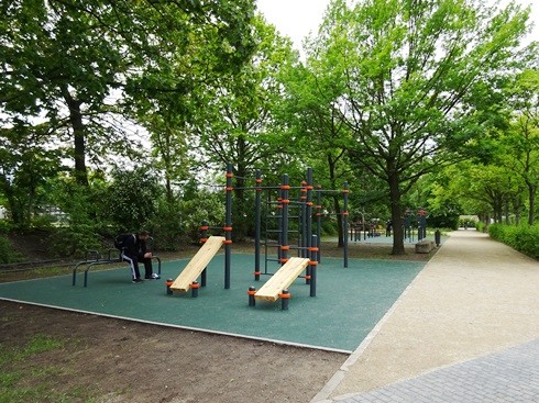 Der Street-Workout-Park ermöglicht ein vollumfängliches Eigengewicht-Training. Er besteht aus einer großen Monkey Bar mit mehreren Klimmzugstangen auf verschiedenen Höhen, Low Bars für Liegestütze und Ruderübungen, einer Sprossenwand, Schrägbänken, einem Stufenbarren sowie einem hohen Barren, an dem Dips ohne Einziehen der Beine möglich sind.