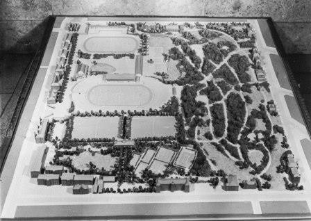 Auf eine Initiative der Berliner Post-Sportvereine und -sportler entsteht von 1926 bis 1929 die Mustersportanlage nach den Plänen des Architekten Georg Demmler. Seitdem wird auf dem ehemaligen Militärareal nicht mehr exerziert, sondern Fußball gespielt. Und nicht nur das: Zum Ensemble gehören neben dem Stadion ein weiträumiger Sportpark mit Tennisplätzen, Tennisstadion, vier Fußballplätzen, Schwimm- und Ruderhalle sowie ein Sommerbad. Im Mittelpunkt der Anlage liegt das Poststadion mit seinen ursprünglich 35.000 Zuschauerplätzen und dem Tribünengebäude.